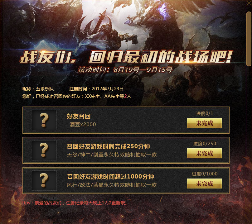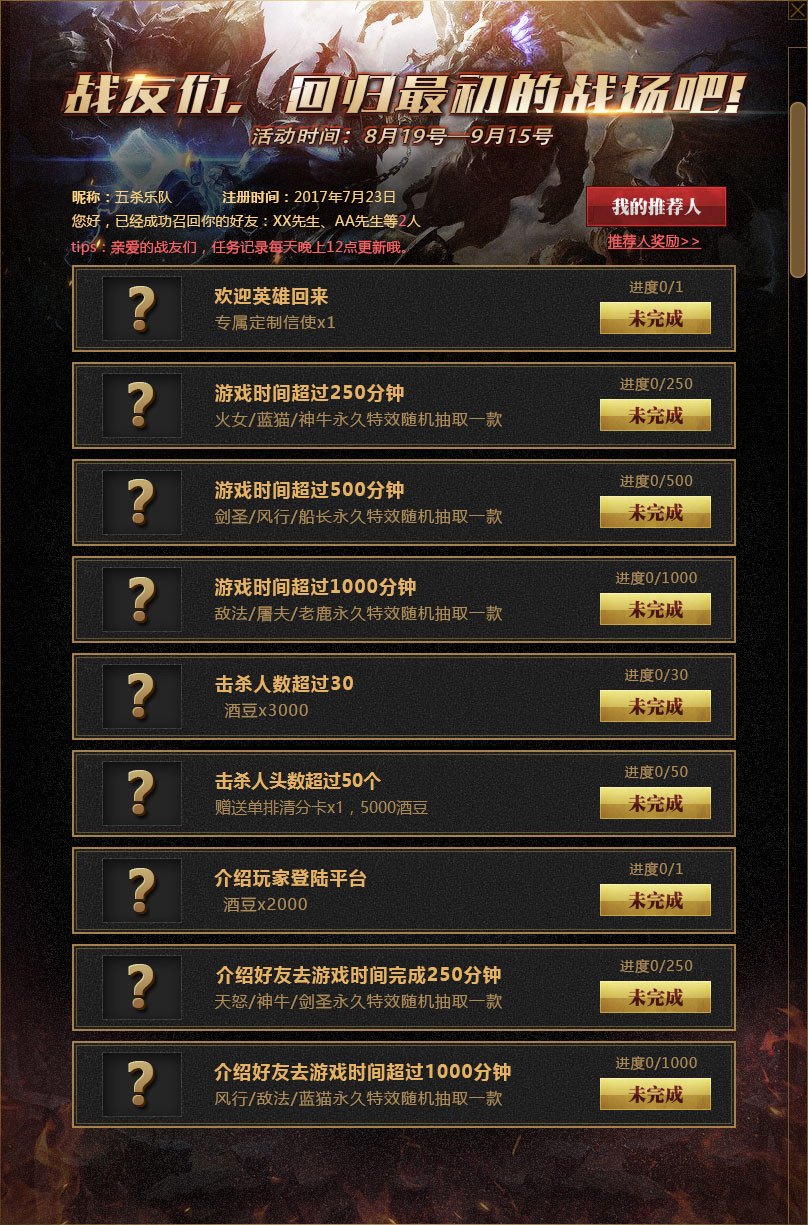 1.推荐人在回归玩家完成任务后也能获得相应奖励。