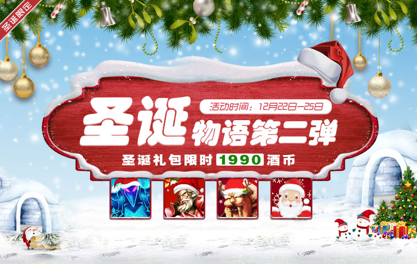 圣诞前夜,平台为回馈玩家推出圣诞限定特惠礼包,内含4款精美特效只需1990酒币,下面就来介绍一下本次礼包的特效预览吧!
