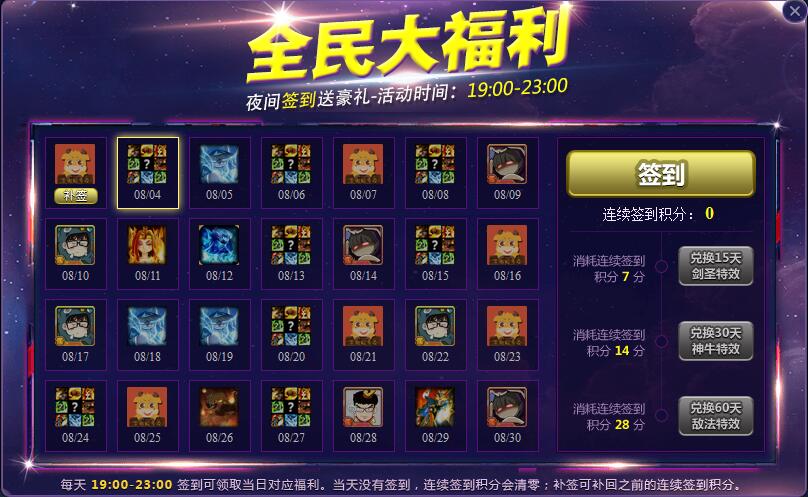 每日签到除获取积分外,可领取一次当日特定奖品(特效、信使、头像)