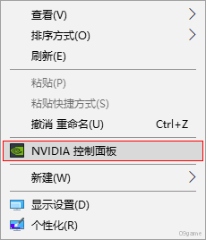 ① 在电脑桌面空白处点击鼠标右键,在菜单栏中选择“NVIDIA 控制面板”