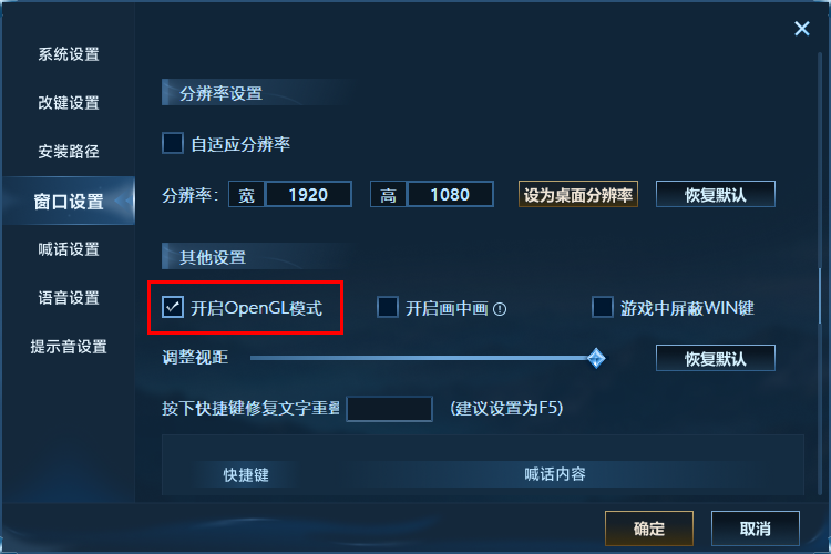 3.在客户端右下角“设置”-“游戏路径”中勾选“开启OpenGL模式”