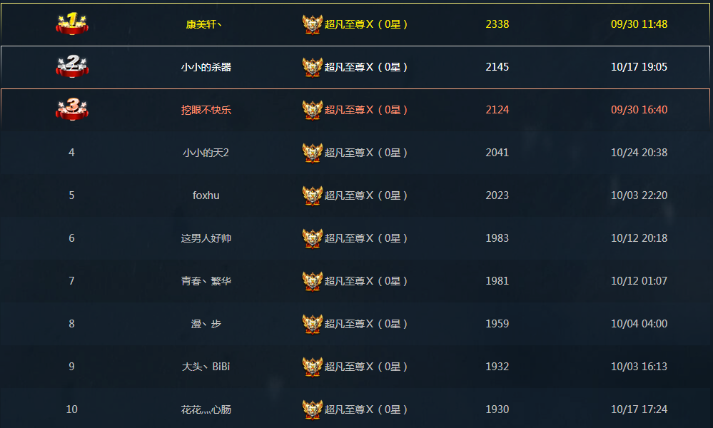 5.平台赛季排名前30名,地图自动显示顶标:竞技之星;称号:竞技之星30名