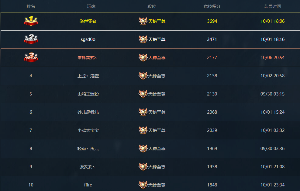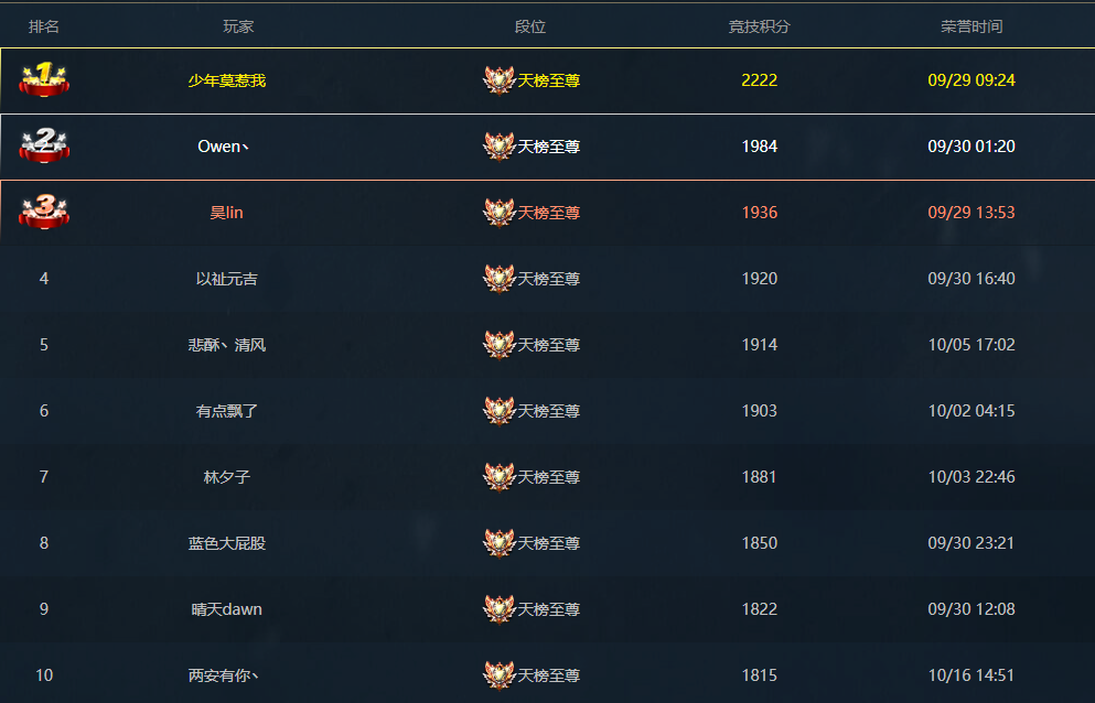 5.赛季排名前30名,地图自动显示顶标:竞技之星;称号:竞技之星30名